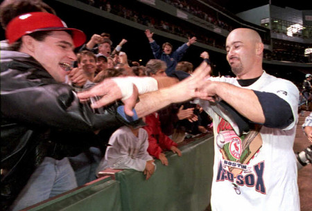 米大リーグのレッドソックスで外野手として1980~90年代に活躍し、プロ野球阪神でもプレーしたマイク・グリーンウェルさんが62歳で死去した。9日、レッドソックスが発表した=1995年9月撮影 【AFP時事】