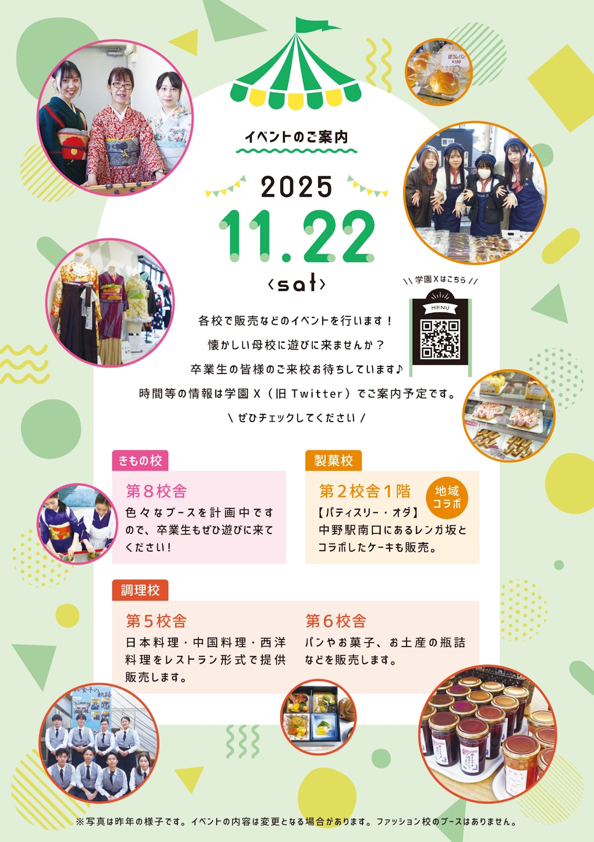 織田きもの・織田調理師・織田製菓の3つの専門学校(中野区中野5)と織田学園中野高等専修学校(同)は11月22日、合同イベントを開催する。