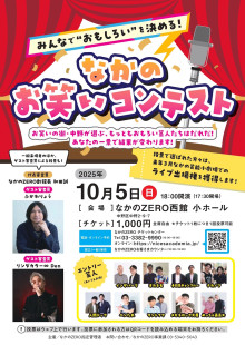「面白い」を決める「なかのお笑いコンテスト」が10月5日、中野駅南口・千光前通り「なかのZERO」(中野区中野2)西館小ホールで開催される。