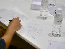 第1部では日高さんがMCを務め、同社の郭さんが「早乙女乱馬」のライブドローイングを披露し、山口さんや参加の子どもたちも「早乙女乱馬」の作画体験を行った。山口さんの作品が披露された際は、「上手」「すごい」などの声とともに拍手が起きた。子どもたちの作品は各テーブル内で披露され、良いところを言い合う形で、それぞれの感想を述べた。