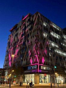 (関連フォト)今年の4月に東京2025デフリンピックのメインカラー「桜色」にライトアップされた中野区役所
