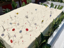 祭壇から下りた参列者は、グループごとに針供養塔に一礼。およそ1時間で供養を終えた。