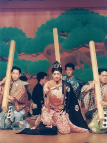 能を舞う小島さんは観世流シテ方で、1970(昭和45)年中野区生まれ。観世喜之さんに師事。祖父は先々代喜之に、伯父は先代喜之に師事した能楽師で、幼少より能に親しむ。シテ方として東京を中心に各地方公演だけでなく、海外公演にも多数参加。宮城県白石市にある「碧水園」、埼玉県深谷市、地元・中野区における定期公演のほか、薪(たきぎ)能、ろうそく能などの公演を企画・実施。「多くの人に能楽に触れる機会を持ってほしい」と能楽講座の開催にも尽力する。