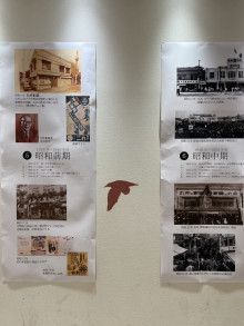 1889(明治22)年に開業した甲武鉄道の中野駅舎(現在建設中の桃園広場辺り)の写真や陸軍中野学校、1931(昭和6)年に中野区桃園町で創業した丸井の外観写真や現在の場所に移転した中野駅の外観写真など、中野マルイ関連以外にも中野区が協力して当時の写真を提供し、年表と共に掲示している。