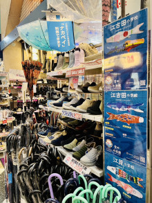 (関連フォト)アーケード支柱には作品紹介も(写真は「はきもの辻屋」横)