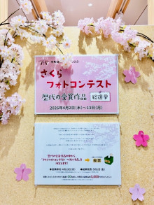 (関連フォト)「さくらフォトコンテスト」歴代の受賞作品総選挙の案内掲示