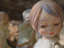 店主の小高均さんは「独創的な人形作品はどれもがとてもかわいく、その表情に癒やされながらも時折垣間見える幻想的な雰囲気で見る者を不思議な世界に誘う。代表作である本物のカキ殻に入っている眠れるカキの子の人形は、そのリアルなカキの身体と愛らしい表情の顔の中に不思議な妖しさがある。とてもキュートでかわいくて、ちょっぴり妖しい不思議な人形に、ぜひ合いに来てほしい」と話す。