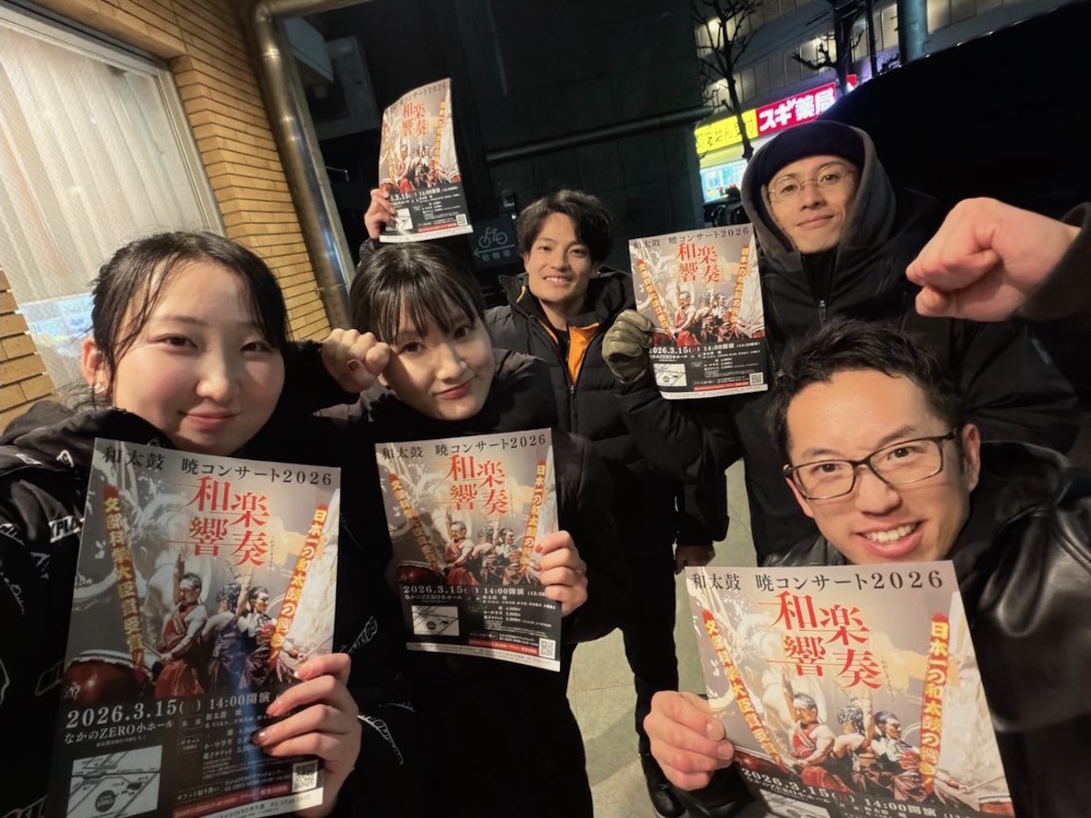 個人で7度の日本一に輝く「鷹-TAKA-」さんの和太鼓プロジェクト「和太鼓 暁」のコンサ-ト「和楽響奏(わがくきょうそう)」が3月15日、なかのZERO(中野区中野2)小ホ-ルで開催される。