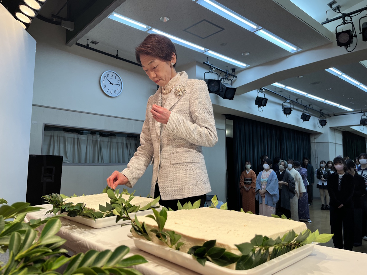 中野・織田学園で恒例「針供養祭」 着物女子ら巨大豆腐に献針、針ねぎらう
