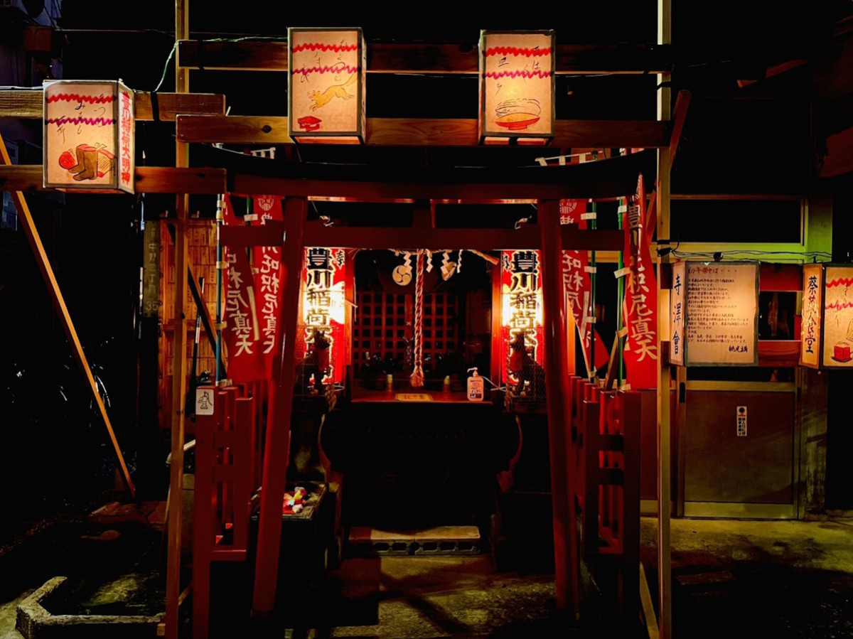 桃園通りと中野マルイ裏の間にある桃園会館に併設する桃園稲荷(中野区中野3)前で2月4日、初午(はつうま)祭を祝う「行灯(あんどん)祭」が始まる。