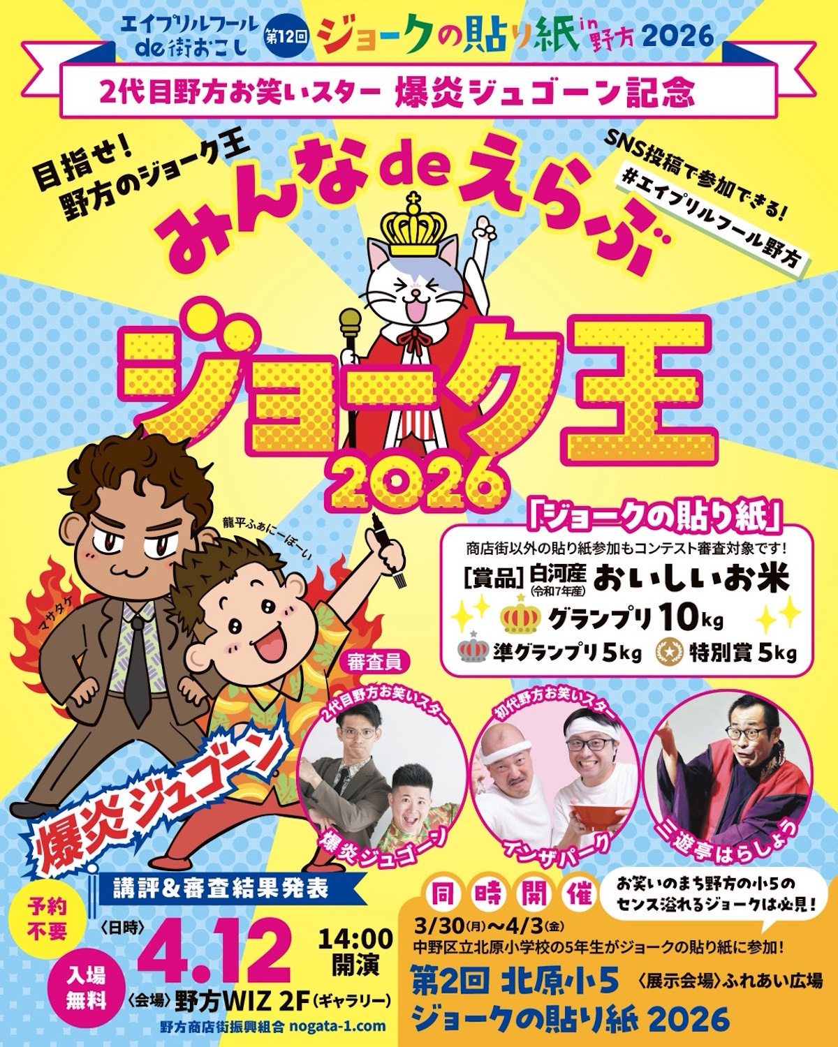 西武新宿線野方駅周辺で3月30日、「ジョーク貼り紙」を店頭などに貼り出すイベント「エイプリルフールde街おこし ジョークの貼り紙 in野方 2026」が始まった。