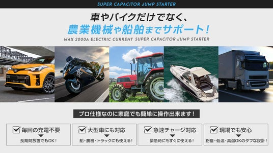 本製品は、従来の充電式スターターとは一線を画す「スーパーキャパシタ式」を採用。