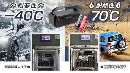 -40℃の極寒環境でも安定動作し、バッテリー上がりの不安を解消します。事前の充電が不要なため、いざという時に使えない心配も一切ありません。