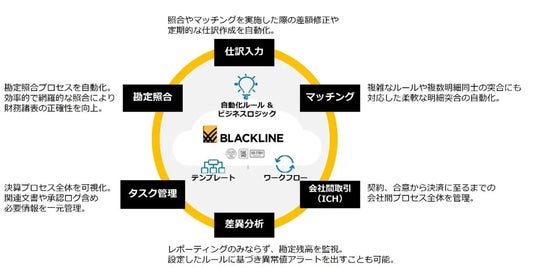 ブラックラインは経理業務プロセスの可視化、標準化、自動化、統制強化を実現する経理業務変革プラットフォーム「BlackLine」を提供しています。世界130か国以上、約4,400社の企業、390,000を超えるユーザーに利用され、日本国内でも100社以上に導入されています。特に決算業務を中心に、既存の会計システムなどでカバーされない手作業をデジタル化することで、経理人材のスコアキーパーからビジネスパートナーへのシフトを支援します。また如何なる環境でも持続可能かつリアルタイムにグループ全体の経理データが可視化されることで、ガバナンス強化や経営の意思決定の迅速化に貢献します。詳しくはこちらからご覧ください。